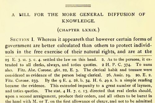 Drafted Bill for the More General Diffusion of Knowledge. Daughter Mary (Maria) born. Brickwork of first Monticello completed.