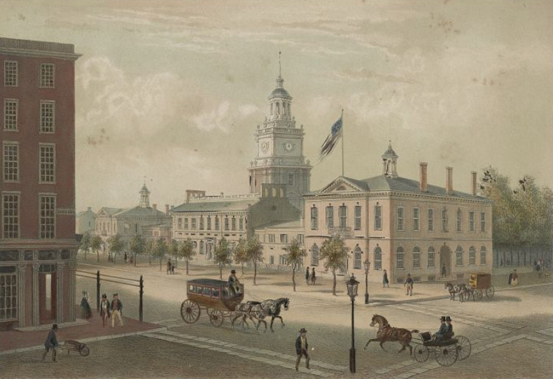 1790In late 1790 the capital moves to Philadelphia where Hemings prepares dinners for the President, European diplomats, Jefferson's fellow cabinet members, congressmen, and many national and international visitors. His wage of seven dollars a month is the same amount Jefferson pays free staff. Hemings was often allotted "market money," indicating he made purchases for the kitchen, circulated among other free and enslaved working people and tradesman, and likely learned he could gain legal freedom if he stayed in Philadelphia.