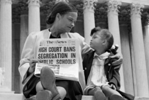 Brown vs. The Board of Education: U.S. Supreme Court overturns "separate but equal" laws and requires integration "with all deliberate speed"