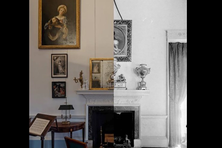 The Parlor in the Levy Period of ownership (right) and today (left)