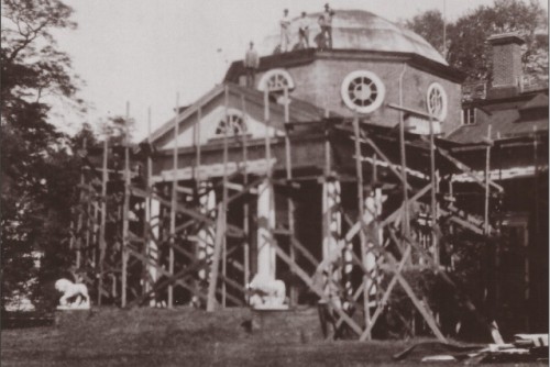 The Foundation begins immediate repairs to stabilize and secure the main house and surrounding grounds under direction of historian and architect Fiske Kimball.