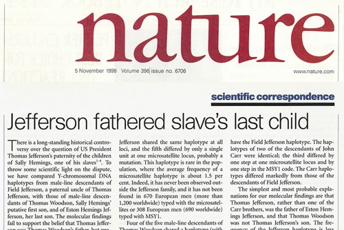 The Foundation releases its “Report on Thomas Jefferson and Sally Hemings," which concluded that Jefferson was "most likely was the father of all six of Sally Hemings's children appearing in Jefferson's records." This research and writing evaluates the 1998 DNA findings of Dr. Eugene Foster and associates.