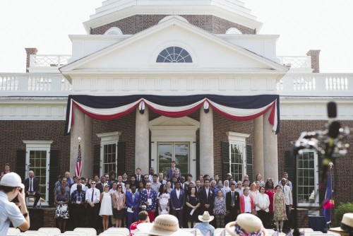 The first annual U.S. Naturalization Service Ceremony is held at Monticello on July 4th. In the sixty years since, close to 4,000 people from around the world have sworn their oath of American citizenship on the steps of Jefferson’s iconic home.