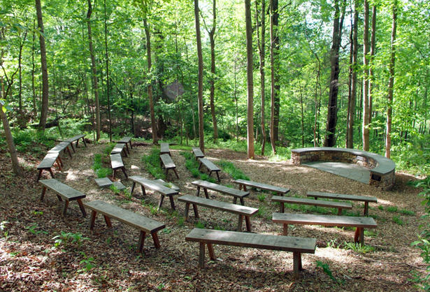 Completed in 2005, the Palmer Woodland Theater is an outdoor classroom sited in a majestic stand of centuries-old white oak trees along the Saunders-Monticello Trail. The theater is built around a circular, masonry stage, and is organized into a series of ter-races with rustic benches pro-viding seating for up to forty-eight people. Designed by the architects of the parkway itself, Rieley & Associates, the Palmer Woodland Theater will provide a venue for Monticello's educational programs, such as the Saturdays in the Garden series of natural history walks and workshops.