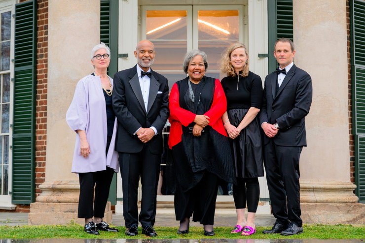 Jane Kamensky; The Honorable Roger L. Gregory (Law medalist); Julieanna L. Richardson (Citizen Leadership medalist); Kate Orff (Architecture medalist); and Jim Ryan (President of UVa) at the Medals Dinner.
