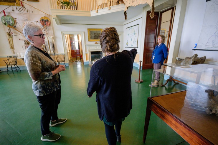 Monticello's guide staff strive to present seamless tours to our guests, but there are a lot of moving parts happening behind-the-scenes. Kamensky got a first hand look at how guides rotate through different stations in the house, keep tours moving on time, and hunt down answers to questions from curious visitors. Seen here in the Entrance Hall are Kamensky with House Tour Supervisor Ashley Hollinshead (foreground) and veteran Guide Lou Hatch (background).