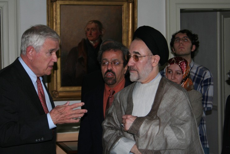 Dan Jordan leads former president Mohammad Khatami of Iran on a tour of Monticello in 2006.
