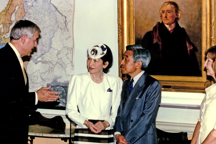 Akihito, Emperor of Japan, and his wife, Empress Michiko, received a tour at Monticello from Dan Jordan on June 15, 1994.