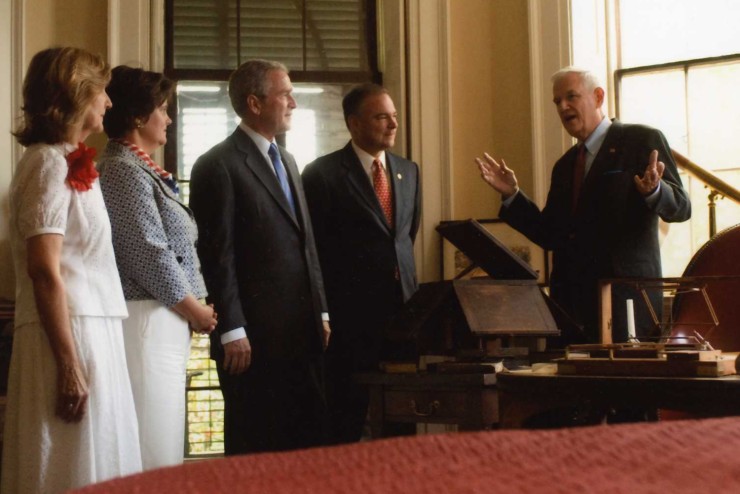 President George W. Bush, Governor Tim Kaine, Dan Jordan, and Lou Jordan in Monticello's Cabinet, 2008.