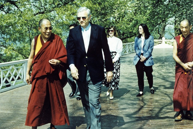 The XIVth Dalai Lama, Tenzin Gyatso, on the North Terrace with Dan Jordan at Monticello.