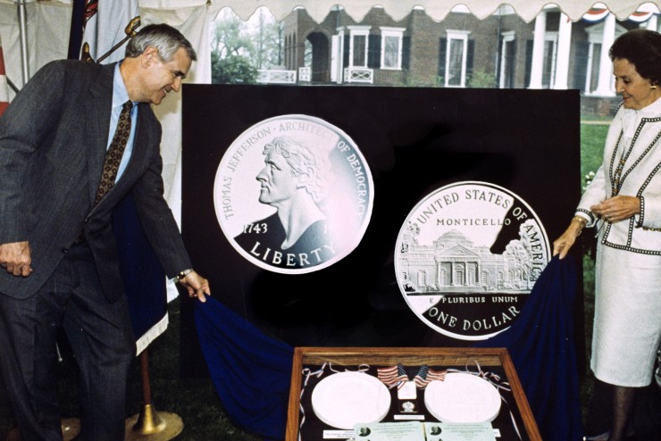 Dan Jordan at the 1994 unveiling of the Commemorative Coin honoring Jefferson's birth.