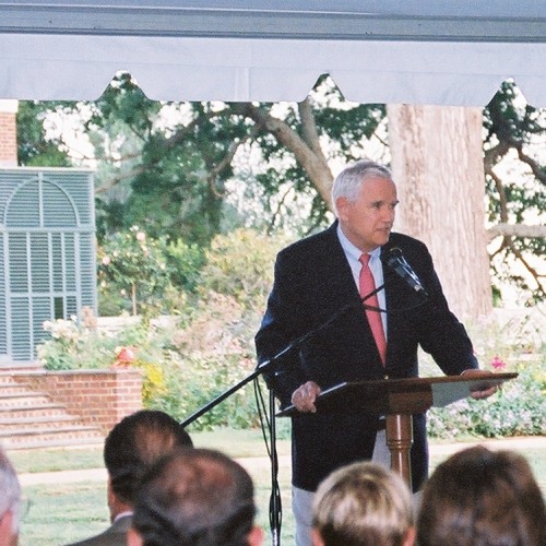 July 4th was Jordan’s favorite day of the year at Monticello. He elevated the naturalization ceremony to become a signature national event, partnering with Coca-Cola and major media outlets, welcoming remarkable speakers, most of whom were themselves naturalized citizens, including: Gen. Colin Powell, Secretary of State Madeleine Albright, Coca-Cola CEO Roberto Goizueta, author Frank McCourt, historian David McCullough (also a dear friend), and architect I. M. Pei. President George W. Bush, who spoke on July 4th, 2008, was one of five presidents to visit Monticello during Jordan’s presidency, including his father, George H. W. Bush, who hosted a conference of governors on Monticello’s West Lawn in 1989.