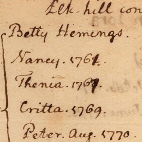 Donate NowElizabeth (Betty) Hemings (1735-1807) was the matriarch of a prominent and extensive family that made up a third of the population at Monticello, the largest family to ever call Monticello home. Ties of bondage and kinship forever intertwined the Hemings and Jefferson families, demonstrating the complex nature of relationships between enslaved people and their owners. Elizabeth Hemings's children and descendants occupied the most important household and trades positions on the mountain, and many of her children were allowed to hire themselves out and keep their earnings, an uncommon experience among those enslaved by Thomas Jefferson. Three of her children and six of her grandchildren were the only people Thomas Jefferson freed. Her daughter, Sally Hemings, became one of the most well-known enslaved women in American history due to Jefferson's paternity of her children, a connection that inspires continued evaluation and exemplifies the complexity of race and slavery in America.