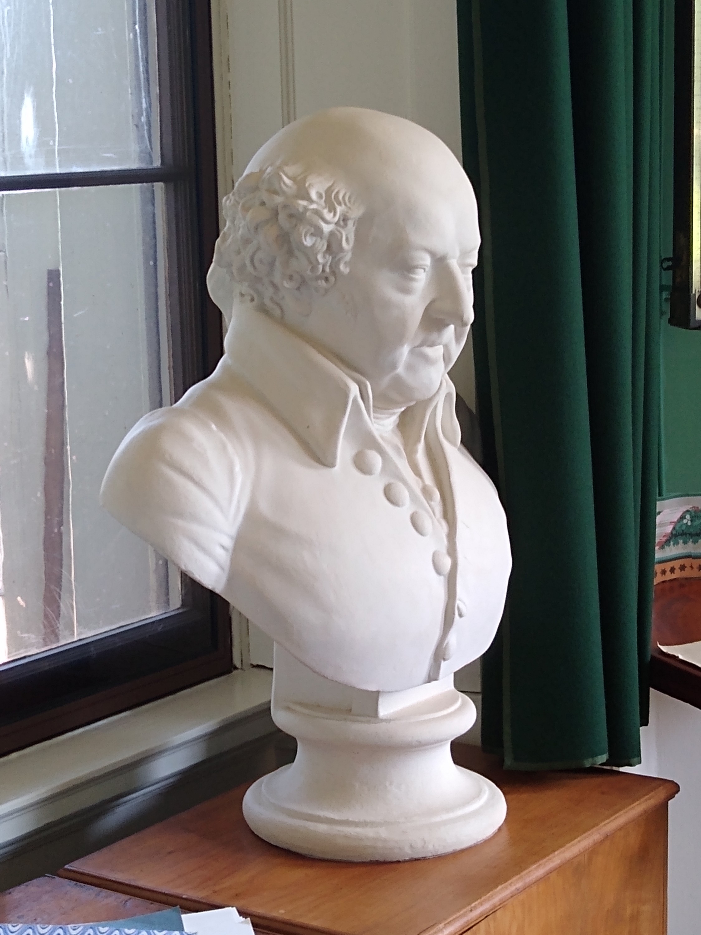 While Jefferson remained in Paris, Adams served primarily in London, from where, Jefferson wrote Abigail Adams, he considered her "as my neighbor."[1] In March of 1786, Jefferson went to England on diplomatic business, though in the two months he was there, he and Adams found time to make a tour of English gardens. They also visited Shakespeare's home — and chipped off a bit of his chair as a souvenir, in Adams's words, "according to the custom."[2]