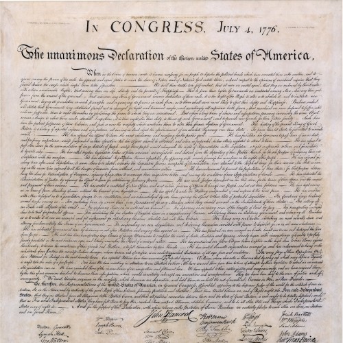 We hold these truths to be self-evident, that all men are created equal, that they are endowed by their Creator with certain unalienable Rights, that among these are Life, Liberty and the pursuit of Happiness.--That to secure these rights, Governments are instituted among Men, deriving their just powers from the consent of the governed, --That whenever any Form of Government becomes destructive of these ends, it is the Right of the People to alter or to abolish it, and to institute new Government, laying its foundation on such principles and organizing its powers in such form, as to them shall seem most likely to effect their Safety and Happiness. Prudence, indeed, will dictate that Governments long established should not be changed for light and transient causes; and accordingly all experience hath shewn, that mankind are more disposed to suffer, while evils are sufferable, than to right themselves by abolishing the forms to which they are accustomed. But when a long train of abuses and usurpations, pursuing invariably the same Object evinces a design to reduce them under absolute Despotism, it is their right, it is their duty, to throw off such Government, and to provide new Guards for their future security.--Such has been the patient sufferance of these Colonies; and such is now the necessity which constrains them to alter their former Systems of Government. The history of the present King of Great Britain is a history of repeated injuries and usurpations, all having in direct object the establishment of an absolute Tyranny over these States. To prove this, let Facts be submitted to a candid world.