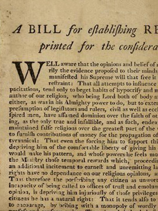 Jefferson considered the Virginia Statute for Religious Freedom one of his three greatest achievements. James Madison ushered the statute through the Virginia legislature and incorporated its commitment t0 religious freedom and the separation of church and state into the Bill of Rights. These principles would end state-sponsored religion in the United States and the denial of full rights to its citizens of other faiths. Today, Americans may take this right for granted, yet it was the hard-won result of a decade-long effort by Jefferson and Madison.