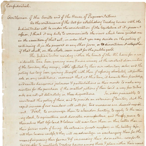 A transcription of Jefferson's secret request to the United States Congress for funds for the Expedition.
