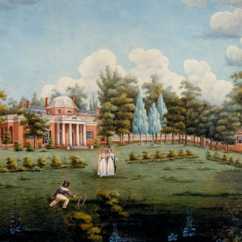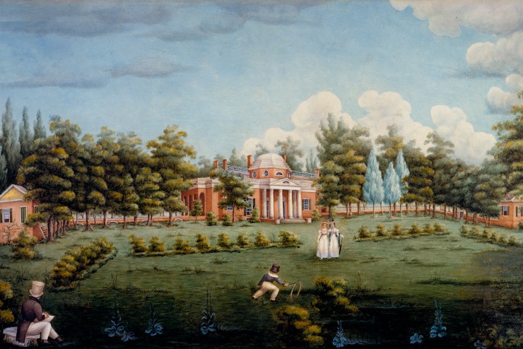 This 1825 watercolor by Jane Braddick Peticolas shows Jefferson's grandchildren enjoying the West Lawn.