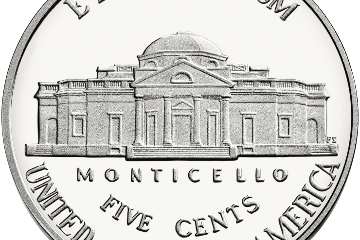 The West Front of Monticello was first featured on the U.S. Nickel in 1938.