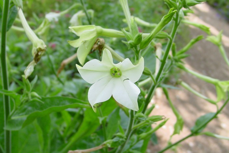 Flowering Tobacco, is usually grown as an annual for its sweet-scented, white flowers that open only in the evening or during the cooler parts of the day.