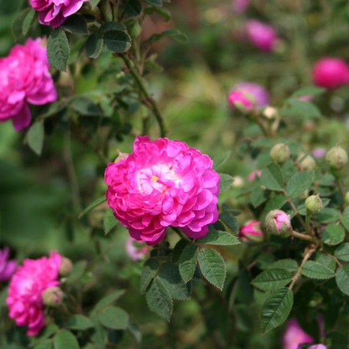The gardens are planted as many as three times a year. In late April spring bulbs, especially tulips, dominate the stage and probably unify the gardens more than at any other time of year with their showy displays of color. By mid-May, and continuing until the middle of June, numerous biennials and perennials, from Sweet William to Canterbury bells to foxglove, come into bloom. They are complemented by the flowering of old rose varieties as well as hardy annuals -- plants that thrive in the long, cool Virginia spring, such as sweet pea, poppy, stock, larkspur, and calendula.