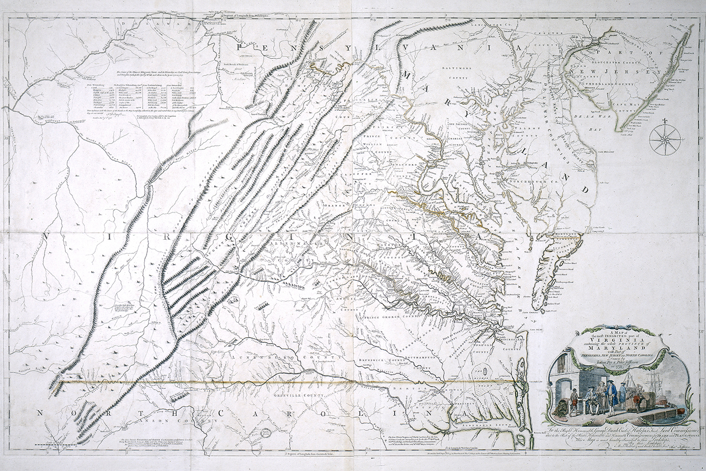 The room held many maps of the world including one of Virginia as surveyed by Jefferson's father, Peter Jefferson, and Joshua Fry.