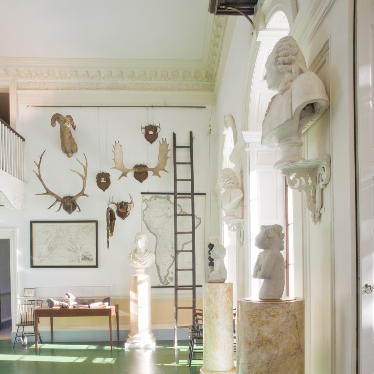 Guests entered the Entrance Hall when arriving at Monticello. This room highlighted Jefferson’s wide-ranging interests and dedication to learning about the world around him. In this room, visitors viewed artifacts of American natural history, western civilization, and American Indian cultures while they waited for a chance to greet the former President. Showcasing the objects in this room demonstrated Jefferson’s belief that “knowledge is power, knowledge is safety… knowledge is happiness,” And that knowledge should be shared among the people in a democratic state.