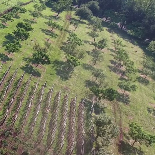 Between 1769 and 1814 Jefferson had as many as 1,031 fruit trees planted in his South Orchard. This orchard formed a horseshoe-shape around the two vineyards and berry squares. It was organized into a grid pattern in which were planted eighteen varieties of apple, thirty-eight of peach, fourteen cherry, twelve pear, twenty-seven plum, four nectarine, seven almond, six apricot, and a quince.