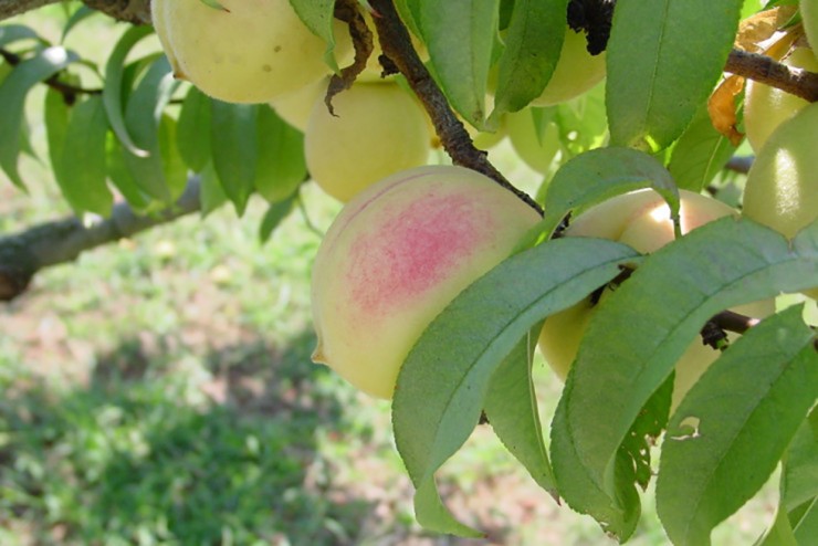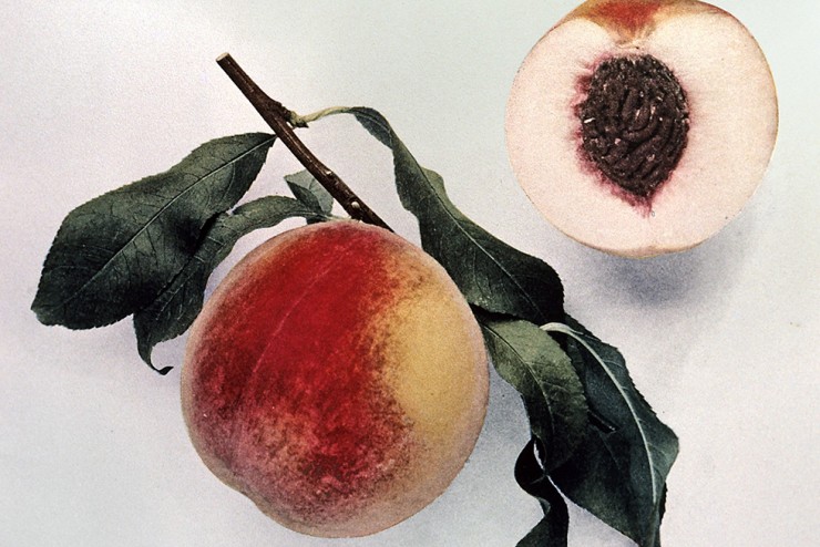 Peaches were popular because they were easy to grow, trees bore fruit soon after planting, and they could be propagated simply from seed. Jefferson dried the fruit and also made mobby, a peach brandy common in Virginia. He had thousands of peach trees planted alongside his fields as an ornamental fence and also envisioned this fast-growing tree as a forestry product to provide wood for his fireplaces. But Jefferson also tried to assemble a collection of peach varieties for the table: Heath Cling, Oldmixon Cling, Morris' Red Rareripe -- the first American peach varieties, and Italian peaches previously unknown in this country -- the Alberges, Vaga Loggia, and Apple.