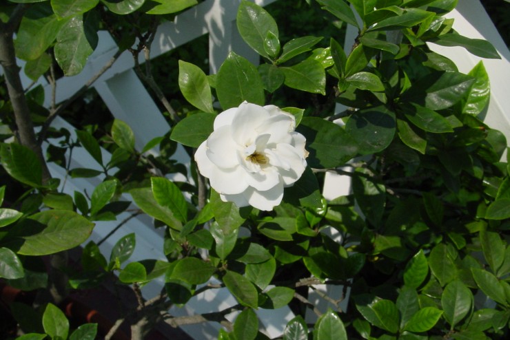 Native to the tropics and sub-tropics of the Old World, Gardenia jasminoides, was a popular greenhouse plant in the mid-nineteenth century. Linnaeus named the genus Gardenia for Alexander Garden in recognition of his contributions to botany. Thomas Jefferson requested in a letter dated August 9, 1788, to J. Banister, Jr. that "Gardenia" be sent, along with several other plants, to his friend Madame Tessé in France.
