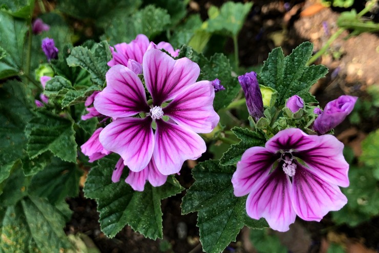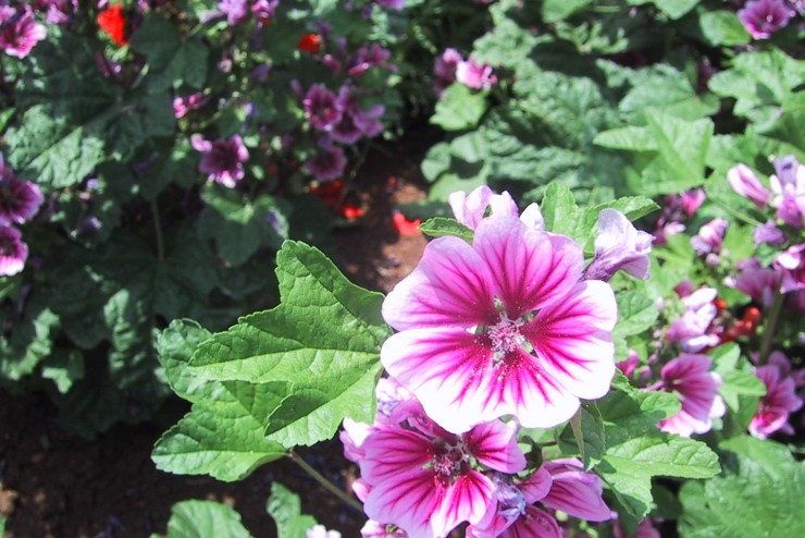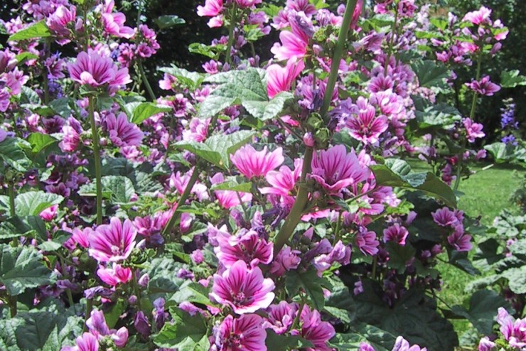 When Thomas Jefferson noted "French Mallow" on an undated memorandum of cultivated flowers, he was probably referring to Malva sylvestris, a European native with handsome, hollyhock-like purplish-pink flowers. Some Charlottesville gardeners refer to it as "Baby Hollyhock" because of similarities to its more familiar mallow cousin; another common name is "Cheeses Mallow," a reference to the shape of the seed clusters.