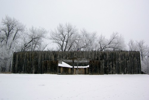 Lewis and Clark select a site across the Missouri River from the Indian villages and begin construction of Fort Mandan. (Pictured: Winter view of reconstructed Fort Mandan.)