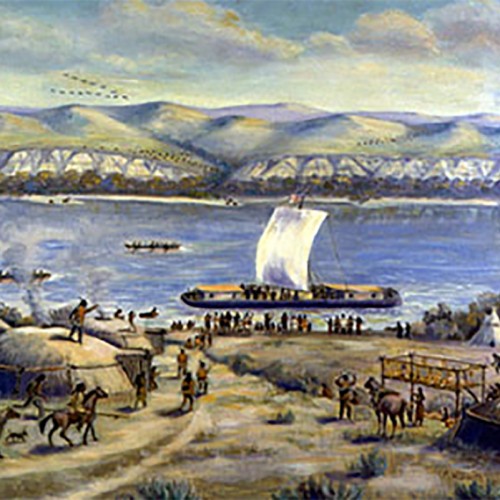 The Expedition arrives at the earth-lodge villages of the Mandan and Hidatsa tribes, near present-day Bismarck, North Dakota. With 4,500 inhabitants, the villages have a greater population than St. Louis.