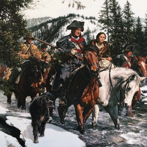 The Expedition ascends into the Bitterroot Mountains, with Shoshone guide Old Toby leading the way.