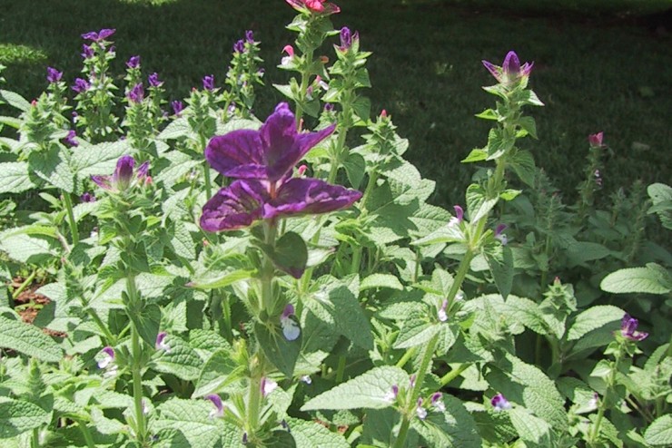 Horminum Sage is a hardy annual native to the Mediterranean region. It was grown in Britian as an ornamental in the sixteenth century and illustrated by John Gerard in 1633. Horminum Sage also has a number of traditional medicinal and culinary uses. Horminum Sage grows to 1 or 2 feet with a neat, tuft-like crown of sage-like leaves and a striking top-knot of colorful bracts in delicate hues of pink, blue, and purple. It is useful in flower borders and as an edging plant.
