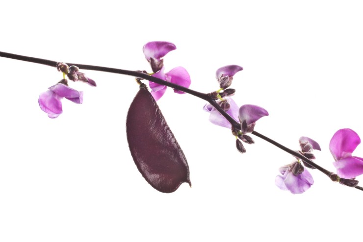 This ornamental vine is native to the tropical regions of Africa and is cultivated extensively in Asia and North Africa for its edible burgundy colored fruit pods, which, like the flowers, are highly ornamental. The hyacinth bean, also known as Egyptian and Indian bean, was introduced to European gardens by the early 1700s and was sold by American nurserymen by the early 19th century. In 1812, Thomas Jefferson noted "Arbor beans white, scarlet, crimson, purple. at the trees of the level on both sides of the terrasses, and on long walk of [kitchen] garden."1 Although Jefferson does not specifically cite this species, hyacinth bean was sold by his favorite nurseryman, Bernard McMahon, in 1804, and it is possible that Jefferson's "purple" bean was the Dolichos lablab.