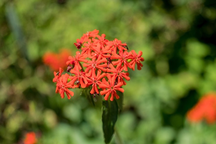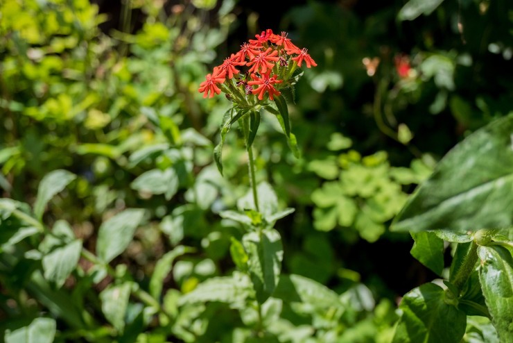 Maltese Cross was an early import to the American colonies, and was listed in Bernard McMahon's 1804 broadsheet as "Scarlet Lychnis." It was planted in one of the oval beds at Monticello in 1807.