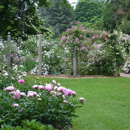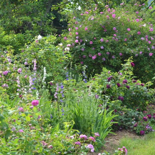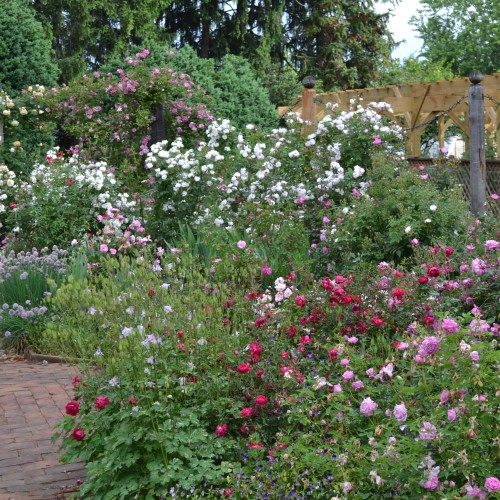 The Rose Border is a collection of China, Gallica, Musk, Moss, Damask, and other once-blooming, antique and species roses.