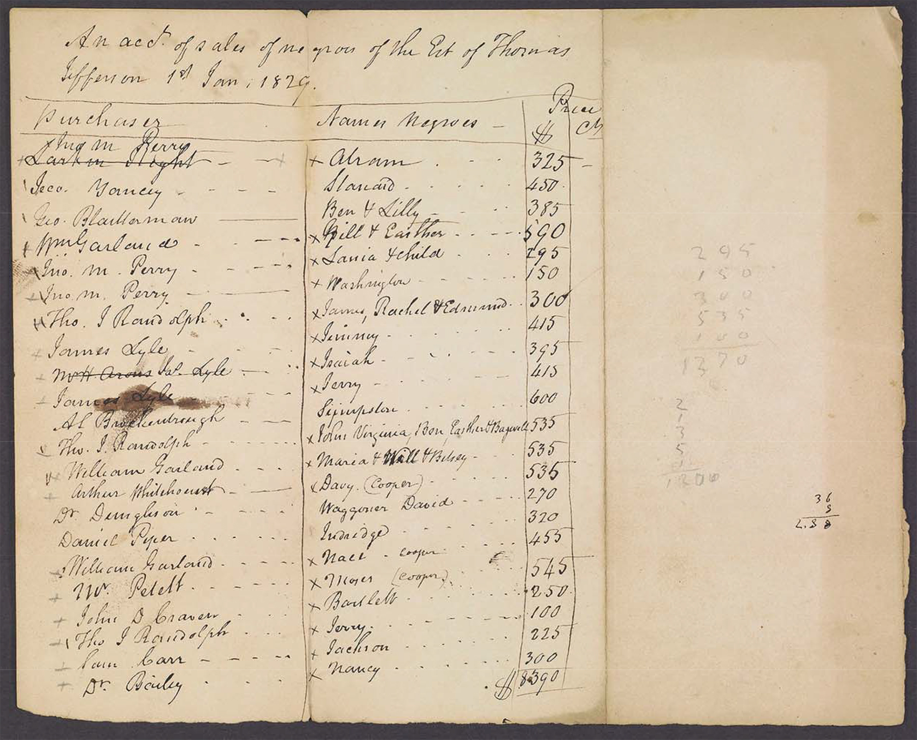 - 1. Thomas Jefferson to John Wayles Eppes, 13 October 1820,” Founders Online, National Archives, last modified April 12, 2018, http://founders.archives.gov/documents/Jefferson/98-01-02-1583; Account of the Sale of Slaves from Thomas Jefferson’s Estate (1829), http://tjrs.monticello.org/letter/2340.