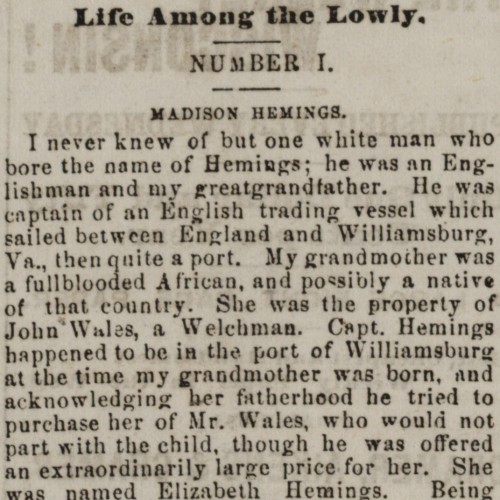Recollections of Madison Hemings