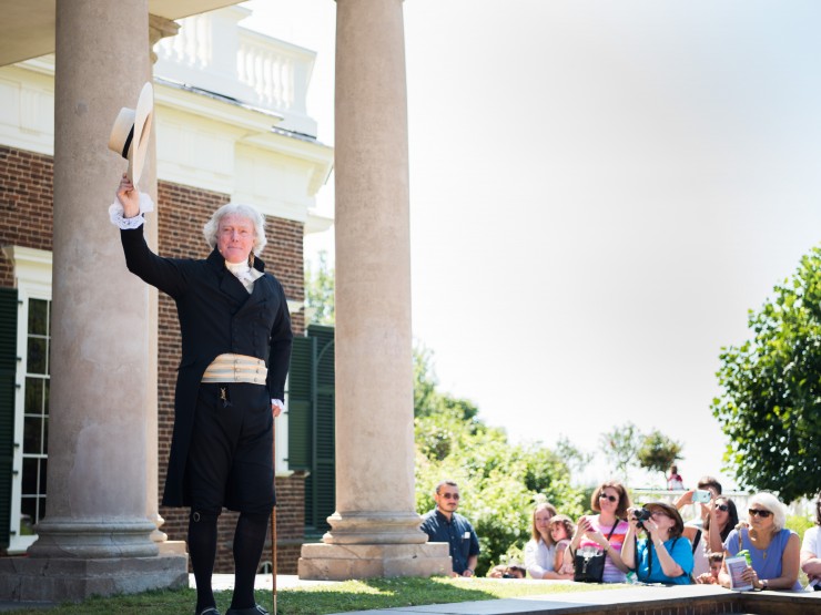 Barker has performed as Jefferson around the country and around the world, at sites including the White House, the U.S. Capitol, the Palace of Versailles, and more. He has been featured as Jefferson in numerous publications including TIME, People, and Southern Living, and has appeared as Jefferson on ABC, NBC, CBS, CNN, C-SPAN and Comedy Central’s Colbert Report. Monticello guests encounter Barker as Mr. Jefferson in regularly-scheduled programming at Monticello. He also contributes to educational outreach efforts, including electronic field trips and livestream programs, and represents Monticello at special events around the country.