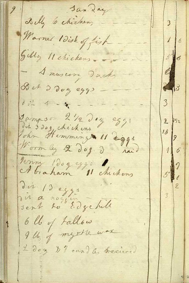 Jefferson’s records, his daughter Martha Jefferson Randolph’s household accounts and family recipes preserved by his granddaughters attest to the remarkable quantity and quality of food and wine served at Monticello. The records rarely mention that the preparation, cooking, serving and cleanup for the meals enjoyed by Jefferson, his family and his guests was made possible by Monticello’s enslaved cooks and their families. Edith Hern Fossett, Monticello’s head cook from 1809 to 1826, followed in the footsteps of three enslaved head chefs before her.