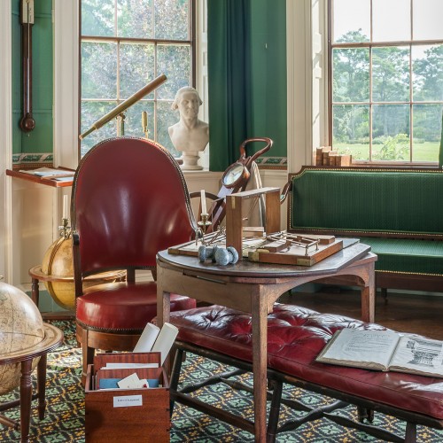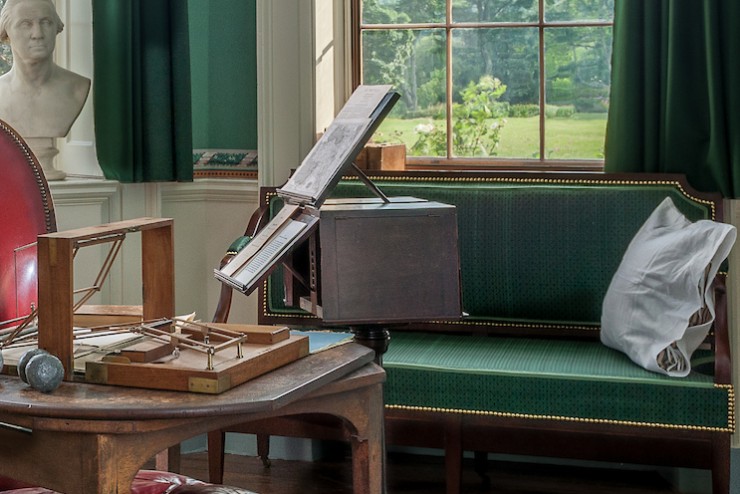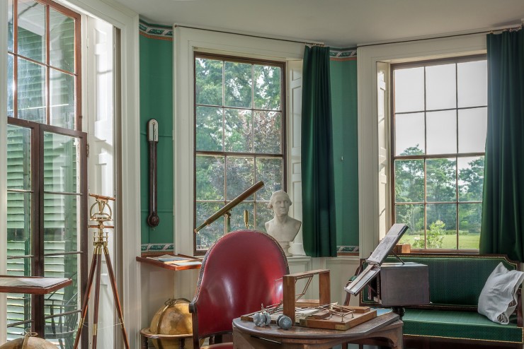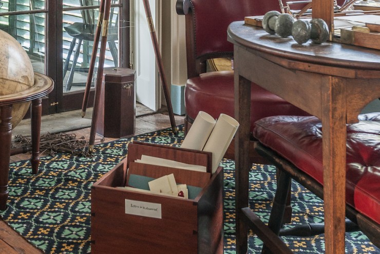Jefferson researched and wrote these letters in what has been called the earliest modern office. Jefferson's Cabinet was, in contemporary language, "user-friendly," with a revolving bookstand, table, and chair.