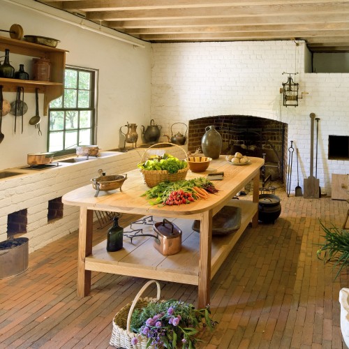 In Monticello's dining room, Jefferson added additional dumbwaiters, including a revolving food service door and small wine service elevators on each side of the fireplace, further reducing the presence of servers.