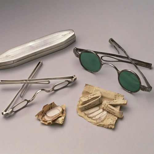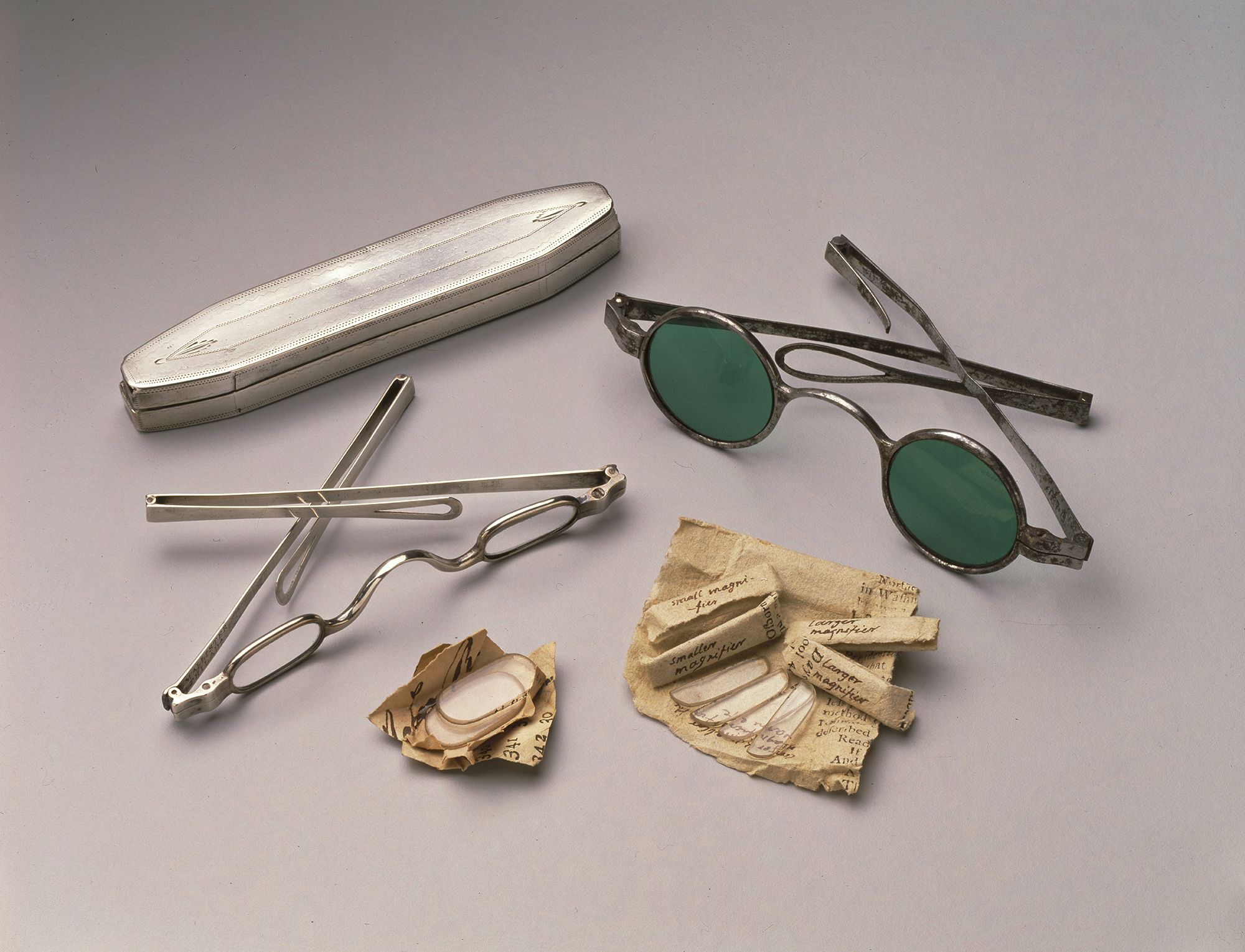Donate NowThomas Jefferson reported, only four months before his death in July 1826, that his eyesight was the faculty least impaired by age.[1] For many years, however, he had used eyeglasses or "spectacles" for reading.[2] In 1806, during his second presidential term, Jefferson placed a new order for eyeglasses with Philadelphia optician, John McAllister. That order grew into a two-year correspondence and resulted in spectacles designed by Jefferson to suit his specific visual needs.