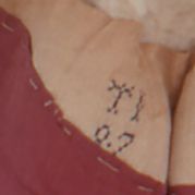 Jefferson's red under waistcoat was altered by the addition of a lining consisting of opened or flattened stockings sewn into the interior to make the garment warmer. Since the stockings were embroidered with "TI" stitched over "9.7.," we know they were one of Jefferson's pairs. The waistcoat was also shortened about five inches, making the bottom edge terminate at the waist. The original waistcoat was significantly longer and had a center back vent.