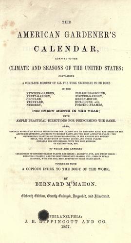 McMahon's chief legacy was his American Gardener's Calendar, the most comprehensive gardening book published in the United States in the first half of the nineteenth century; popularity and influence can be gauged by the eleven editions that were printed up to 1857. The 648-page Calendar was modeled on a traditional English formula, providing month-by-month instructions on planting, pruning, and soil preparation for the various horticultural divisions – the kitchen garden, fruit garden, orchard, nursery, etc.