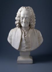 The last twenty years of Voltaire's life were spent in partial exile at his estate at Ferney, near the Swiss border. In February 1778 he came back to Paris where he sat for Houdon, who took a life mask. Houdon made an array of variations, which were immediately popular, including a seated version and a bust. Art historian H. H. Arnason called the bust of Voltaire "one of the most famous if not the most famous portrait sculpture in history."[3] While in Paris, Jefferson saw it in the lobby of the Théâtre Français, now Odéon.[4]